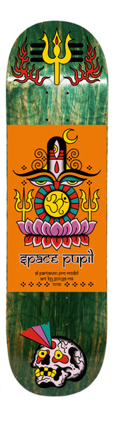 This board is a celebration of Culture! At the heart: the Shiva Lingham—powerful, sacred, alive. Lotus blooms, flames flicker, Om sparks turquoise. Trishuls, moonlight, skull blazing 3rd eye energy, all riding the stained wood grain—pure GUNGA MA X PARTS ZESH vibrations. Protective Kollom Mandala blesses the top and bottom graphic, a geometric flow of protective lines carrying ancestral power under your feet.